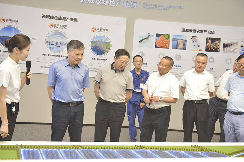 在數字體驗中心,督查組一行詳細了解永祥股份的產業規劃、產能規模、發展歷程、綠色循環經濟產業鏈、精益管理及公司企業文化、資質榮譽等情況,并詳細詢問了永祥產業鏈發展、在建項目工程進度和光伏未來前景等。李總就永祥在工藝技術進步取得的成績、環保工作做出的努力等方面向督查組進行詳細介紹,表示一直以來,通威永祥始終堅持綠色健康發展,在各級黨委、政府的關心和支持下,積極帶動園區產業鏈構建,目前已形成光伏從上游到下游的全產業鏈集群,為地方經濟騰飛與發展作出了永祥表率,為推動國家“雙碳”目標的實現貢獻力量。