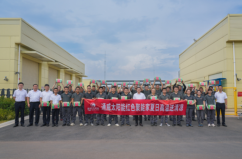 通威太陽能紅色聚能家連年持續開展的送清涼活動把清涼送到生產一線,把對員工的關心和愛護落到實處,極大地鼓舞了員工們的士氣,提高了大家的工作熱情和積極性,為高溫季節安全生產目標的實現起到了積極作用。未來,通威太陽能將繼續堅持關愛職工,把維護職工安全健康權益落在實處,切實為職工打造良好的工作環境,充分提升大家的凝聚力和戰斗力,為公司高質高效發展做出積極貢獻!