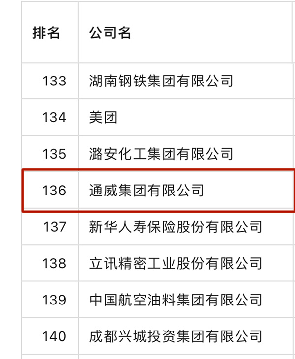 通威排名榜單第136位