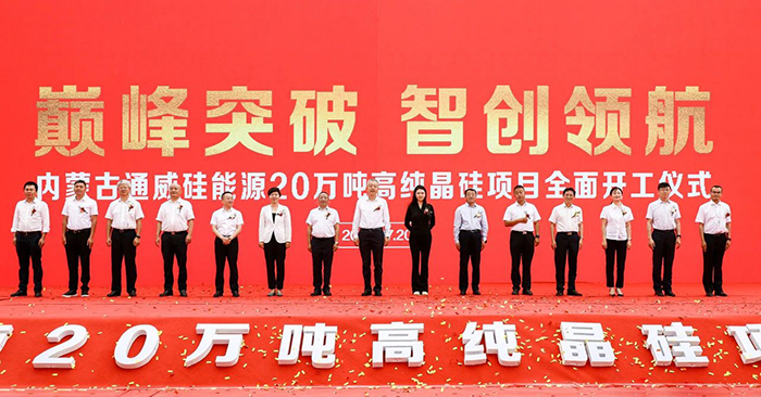 7月20日,內(nèi)蒙古通威硅能源20萬(wàn)噸高純晶硅項(xiàng)目順利開(kāi)工,包頭市委副書記、市長(zhǎng)張銳,包頭市政府秘書長(zhǎng)汪占元,包頭市昆都侖區(qū)區(qū)委書記金永麗,包頭市昆都侖區(qū)區(qū)委常委、常務(wù)副區(qū)長(zhǎng)李忠,通威股份董事長(zhǎng)、CEO劉舒琪,通威股份副總裁、永祥股份總經(jīng)理李斌,通威硅能源指揮長(zhǎng)游書華,中化二建董事長(zhǎng)賈白冰,中化六建董事長(zhǎng)胡二甫,十一化建董事長(zhǎng)李光明,華陸科技副總經(jīng)理袁娜,江蘇雙良總裁馬培林,江蘇中圣高級(jí)副總裁袁自偉,無(wú)錫化工裝備董事長(zhǎng)曹洪海,東方瑞吉總經(jīng)理程佳彪等見(jiàn)證開(kāi)工儀式。