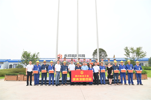 7月11日,四川省總工會(huì)黨組副書記、副主席周鍵率領(lǐng)省總工會(huì)領(lǐng)導(dǎo)班子成員頂著烈日到永祥能源科技項(xiàng)目為一線職工送去清涼物資和親切關(guān)懷。