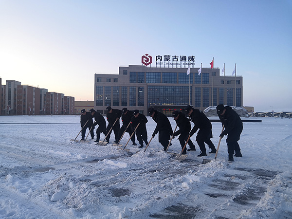 內(nèi)蒙古通威一期員工嚴(yán)寒天氣為廠區(qū)除雪保障出行
