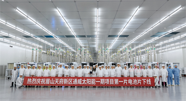 通威太陽能(電池)彭山基地一期高效晶硅電池項目第一片電池片順利下線