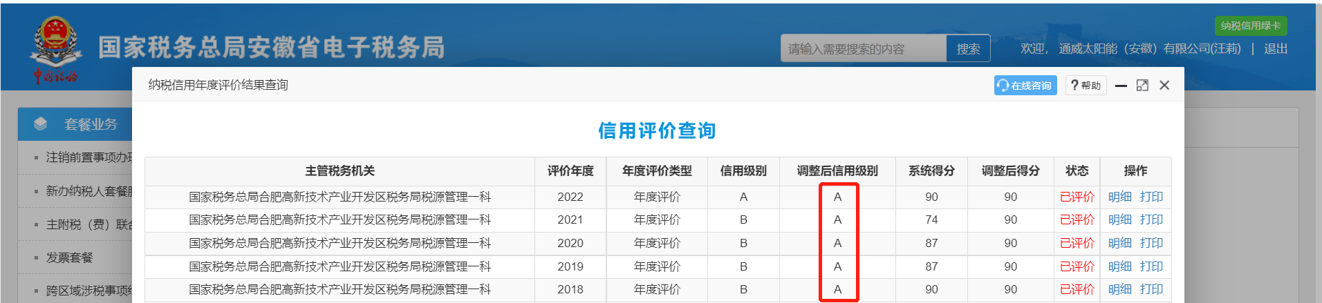 納稅信用管理是國(guó)家稅務(wù)總局規(guī)范納稅信用管理,推進(jìn)社會(huì)信用體系建設(shè),由稅務(wù)機(jī)關(guān)對(duì)納稅人的納稅信用信息開(kāi)展的采集、評(píng)價(jià)、確定、發(fā)布和應(yīng)用的活動(dòng)。該評(píng)定工作是國(guó)家稅務(wù)主管單位對(duì)企業(yè)財(cái)務(wù)管理情況進(jìn)行的綜合評(píng)價(jià),納稅信用分為A、B、M、C、D五個(gè)等級(jí),其中A級(jí)是最高納稅信用等級(jí)。通威太陽(yáng)能安徽公司連續(xù)五年被評(píng)為“A級(jí)納稅人”充分彰顯了公司良好的稅務(wù)管理水平。