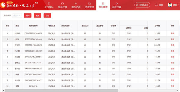 蓉城先鋒黨員學(xué)習(xí)統(tǒng)計(jì)截圖