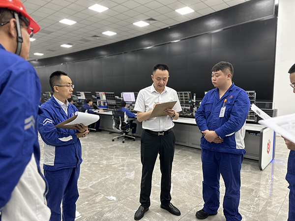 6月28日上午,永祥光伏科技總經理袁中華深入生產一廠集控中心進行員工JCC檢查。副總經理張軍、生產一廠副廠長王小龍、安全環境部副部長何翔及相關人員參加。