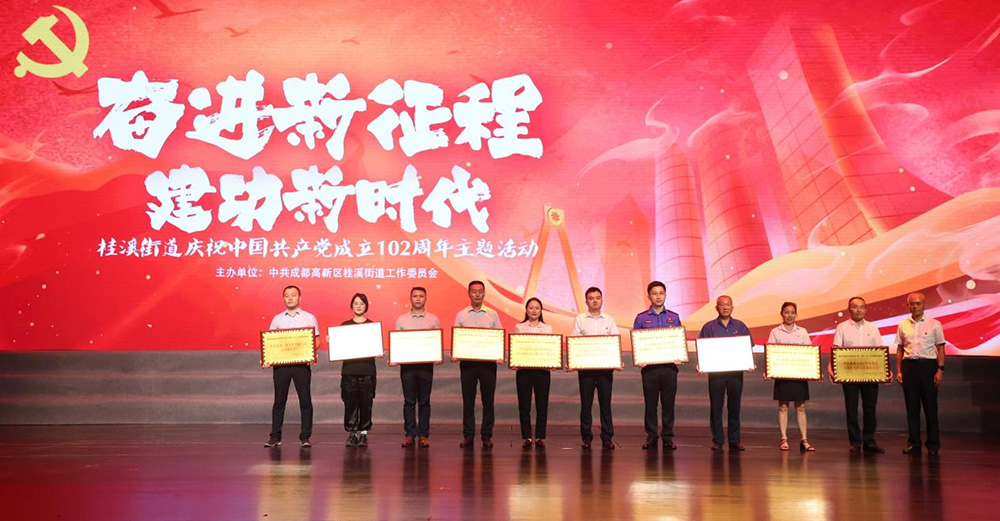 6月26日,由中共成都高新區桂溪街道工作委員會主辦的“奮進新征程 建功新時代”慶祝中國共產黨成立102周年主題活動隆重舉行。中共成都高新區桂溪街道通威國際中心樓宇綜合委員會獲評“先進基層黨組織”,通威集團黨委副書記、副總裁黃其剛榮獲“優秀共產黨員”榮譽稱號。