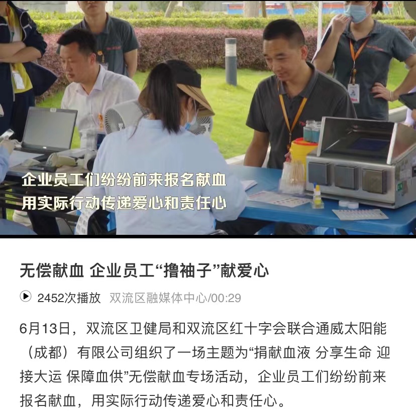 四川新聞網、雙流發布聚焦通威太陽能員工積極參與愛心獻血公益活動