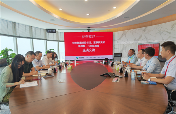 5月23日,成都超有范兒科技有限公司總經(jīng)理范明、四川和顏悅健康管理有限公司總經(jīng)理何群一行蒞臨通威參觀交流,通威食品總經(jīng)理陳波熱情接待并座談。