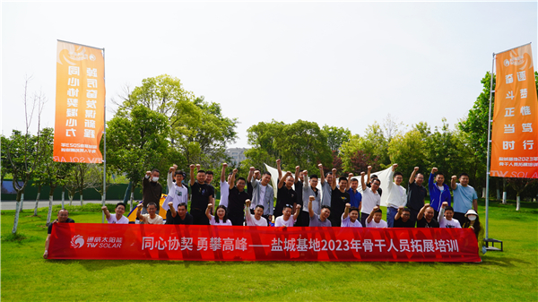 為凝聚人才力量,筑牢人才體系建設(shè),進(jìn)一步強(qiáng)化新項(xiàng)目團(tuán)隊(duì)協(xié)作能力,5月20日,通威太陽(yáng)能(鹽城)有限公司人事行政部組織開(kāi)展以“同心協(xié)契、勇攀高峰”為主題的骨干素質(zhì)拓展活動(dòng),各部門(mén)共計(jì)45人參與本次活動(dòng)。