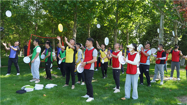 極限飛盤(pán)環(huán)節(jié),在教練的指導(dǎo)下,伙伴們對(duì)飛盤(pán)項(xiàng)目有了基本了解并不斷配合隊(duì)友完成基礎(chǔ)練習(xí),隨后通過(guò)猜拳決出順序依次進(jìn)行了項(xiàng)目挑戰(zhàn)和攻防比拼。每支隊(duì)伍都斗志昂揚(yáng),采用適合自身隊(duì)伍的策略,在攻防轉(zhuǎn)換之間默契十足,不斷溝通協(xié)調(diào)、磨合錘煉,最終完成了團(tuán)隊(duì)比拼贏得了勝利。