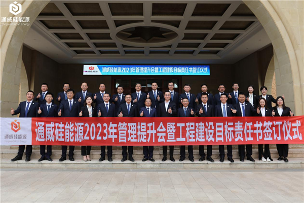 5月10日,通威硅能源2023年管理提升會暨工程建設目標責任書簽訂儀式成功舉行。通威股份副總裁、永祥股份總經理李斌,永祥股份副總經理禚東舉,永祥股份副總經理、永祥新能源常務副總經理羅周,永祥股份安全環??偙O楊武明等領導出席會議,通威硅能源項目指揮長游書華,各部門各專業負責人參加會議。