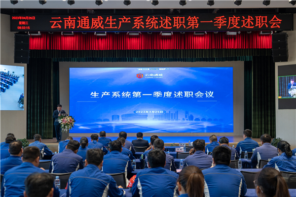 4月26日,云南通威召開生產系統第一季度述職會,總結分析一季度生產經營情況,展望布局全年工作任務。永祥股份副總經理、云南通威總經理杜炳勝,云南通威副總經理汪云清、總經理助理楊成及各部門負責人、技術員參會。