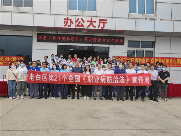 為進一步普及職業(yè)病防治知識,保護勞動者身心健康,4月26日,茂名市電白區(qū)在茂名通威生物科技有限公司組織舉行2023年《職業(yè)病防治法》宣傳周活動。電白區(qū)相關(guān)部門領(lǐng)導(dǎo)及企業(yè)代表出席本次活動。