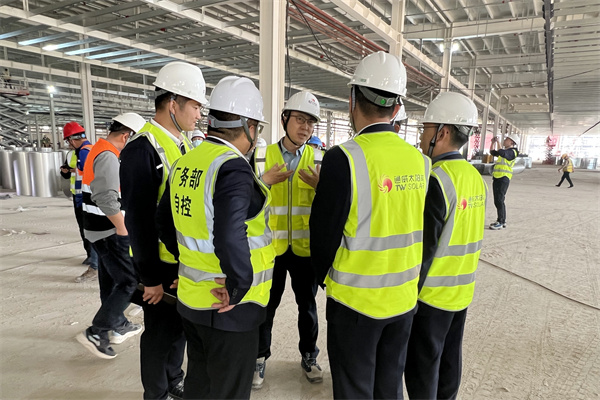 通威股份總裁助理、通威太陽能(合肥)有限公司總經理蕭圣義帶隊檢查車間生產現場