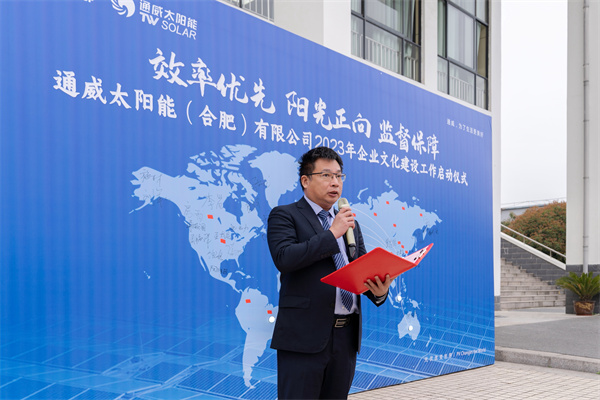 為積極響應(yīng)集團(tuán)企業(yè)文化建設(shè)要求,3月31日,通威太陽能(合肥)有限公司舉行2023年企業(yè)文化建設(shè)工作啟動儀式,通威股份總裁助理、通威太陽能(合肥)有限公司總經(jīng)理蕭圣義,通威太陽能(合肥)有限公司副總經(jīng)理翟緒錦出席,各部門負(fù)責(zé)人、員工代表共計(jì)60余人現(xiàn)場參加。