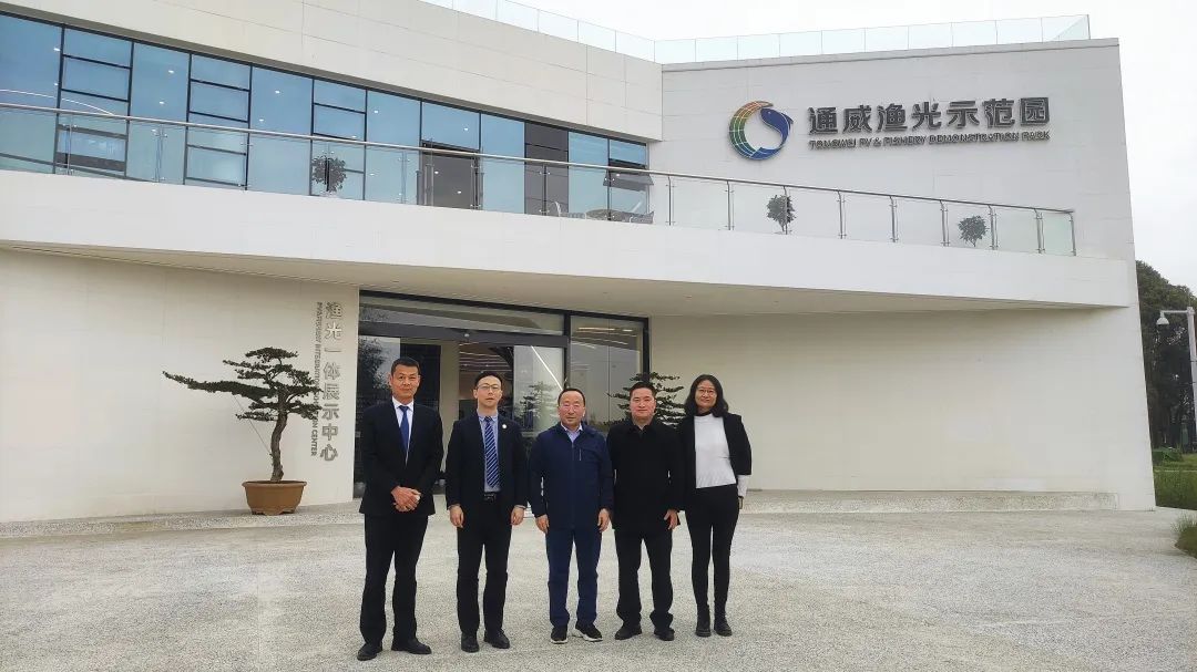 在通威漁光示范園,嘉賓們實地參觀了漁業養殖示范區及光伏區,并進行了座談交流。吳總向朱作言院士詳細介紹了通威農業和新能源產業發展情況及通威“漁光一體”模式,并表示,黨的二十大報告指出,新一輪科技革命和產業變革深入發展。在全球能源消費及高端水產消費升級的當下,中國水產養殖轉型升級的時間點已然箭在弦上,新能源及農業轉型升級已然迫在眉睫。傳統漁業進行現代化、智能化轉變需要能源支撐,也需要大額資金投入。通威全球首創的“漁光一體”通過對“漁”“光”的同步投入,光伏新能源在滿足現代水產養殖能源需求的同時,收益反哺水產養殖,對傳統水產養殖進行轉型升級,通過水產養殖現代化實現高質高產,促進經濟良性循環。