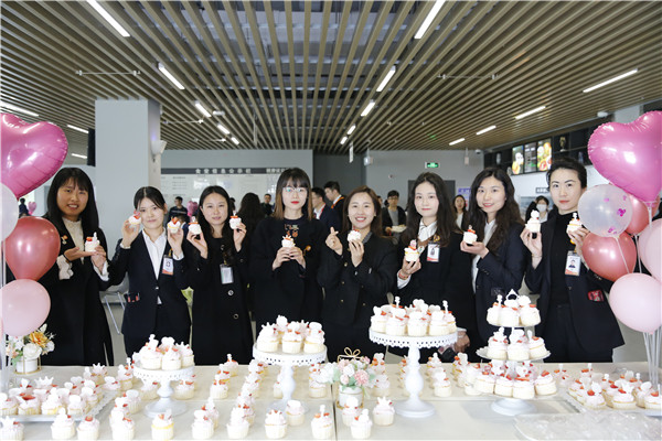 雙流基地女員工在甜品臺前歡樂合影
