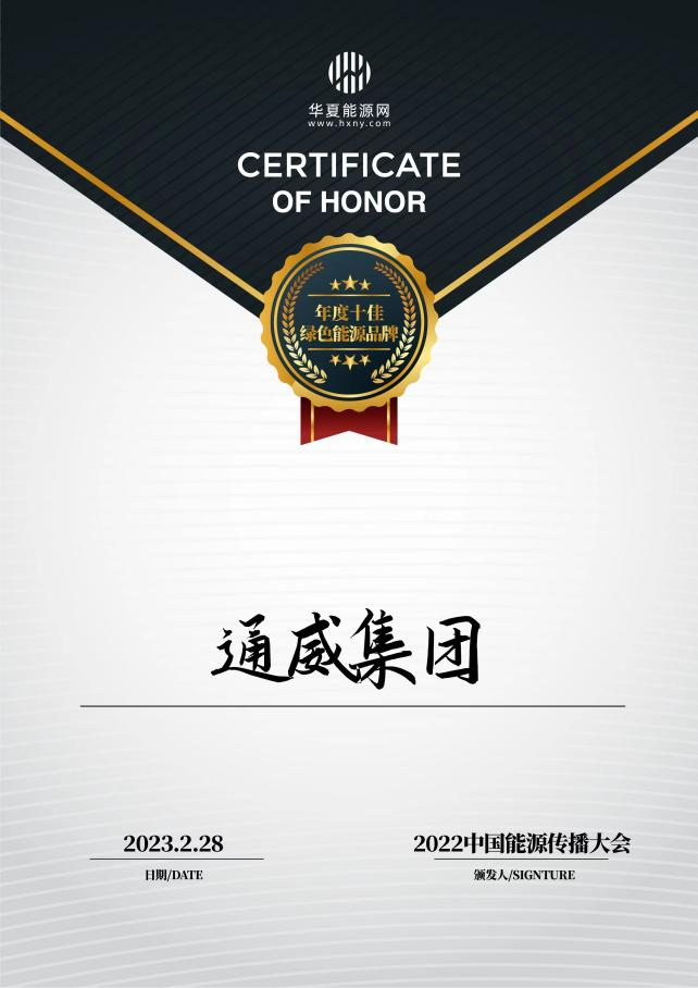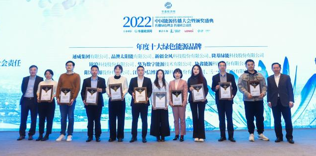 2月28日,以“傳播綠色品牌 傳遞社會責(zé)任”為主題的“2022中國能源傳播大會暨頒獎盛典”在北京隆重舉行,盛典由華夏能源網(wǎng)特別聯(lián)合知名機(jī)構(gòu)、行業(yè)企業(yè)共同舉辦。通威憑借領(lǐng)先的綠色發(fā)展實力和強(qiáng)勁的品牌影響力,榮獲“2022年度十大綠色能源品牌”殊榮。