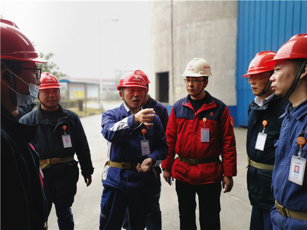 廖總一行先后前往成品工段配料站、水泥磨房等,對現場5S管理、環保收塵設備及其他設備運行情況展開檢查,同時對前期熟料庫底整改項目進行驗收檢查。發現問題提出整改意見,按四定原則落實跟蹤反饋。