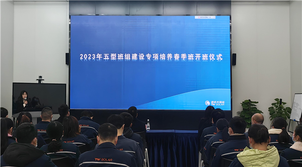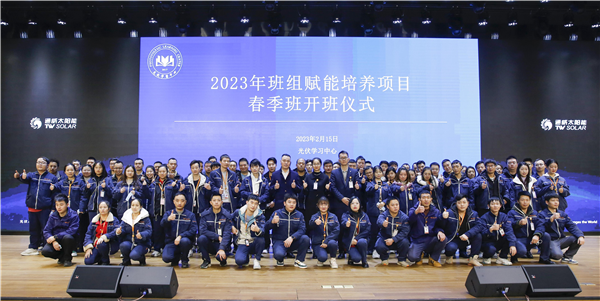 為持續(xù)建設(shè)“技能型、效益型、管理型、創(chuàng)新型、和諧型”五型班組,為打造具有通威太陽(yáng)能特色的五型班組提供人才儲(chǔ)備,近日,通威太陽(yáng)能安徽公司、雙流基地、眉山基地、金堂基地及通合項(xiàng)目同步開(kāi)展了2023年班組建設(shè)專(zhuān)項(xiàng)賦能培養(yǎng)項(xiàng)目春季班開(kāi)班儀式,各地相關(guān)部門(mén)負(fù)責(zé)人出席活動(dòng)并作工作指示。