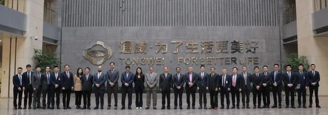 2月19日,ACWA Power(沙特國際電力和水務(wù)公司) & Vision Industries(愿景工業(yè))董事會主席穆罕默德·阿布納揚及高管團隊到訪通威。全國人大代表、全國工商聯(lián)副主席、通威集團董事局劉漢元主席,通威股份董事長、CEO謝毅等熱情接待并座談。