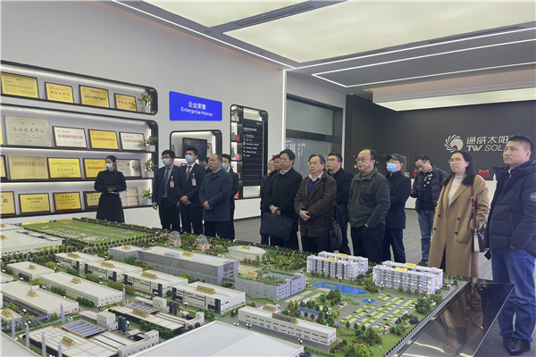 考察團(tuán)一行在通威太陽(yáng)能智能制造展廳參觀