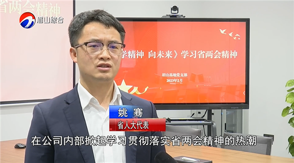 近日,眉山新聞聯播推出“找準能源產業新賽道,推動制造業高質量發展”專題報道,聚焦省人大代表、通威太陽能眉山基地黨支部書記、總經理助理姚騫對通威員工傳達省兩會精神。