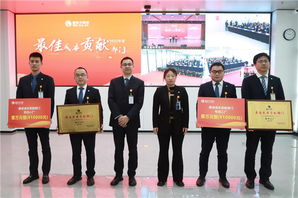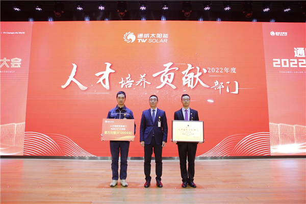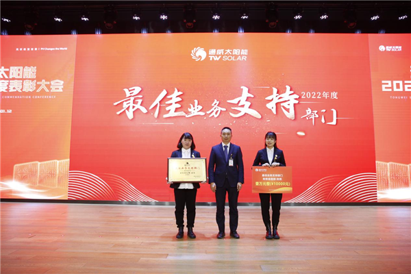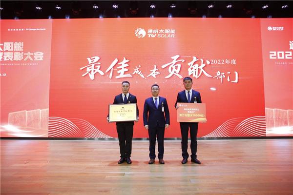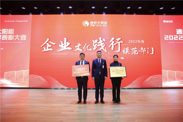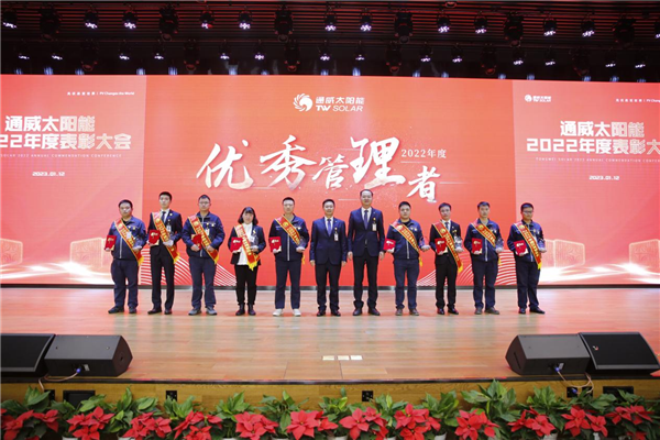 為樹立爭(zhēng)先創(chuàng)優(yōu)的企業(yè)文化,表彰先進(jìn)、樹立榜樣,1月12日,通威太陽(yáng)能2022年度表彰大會(huì)隆重舉行。通威太陽(yáng)能合肥、雙流、眉山、金堂基地及通合項(xiàng)目?jī)?yōu)秀員工及優(yōu)秀團(tuán)隊(duì)代表、各部門員工代表現(xiàn)場(chǎng)及視頻參會(huì),通威太陽(yáng)能總經(jīng)理周華、副總經(jīng)理宋梟、總經(jīng)理助理陳君及各基地負(fù)責(zé)人出席活動(dòng)并為優(yōu)秀員工、優(yōu)秀部門頒發(fā)獎(jiǎng)項(xiàng)。
