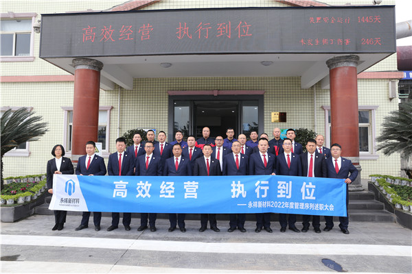 1月9日,永祥新材料2022年度管理序列述職大會成功召開,公司常務(wù)副總經(jīng)理廖萬能、副總工程師吳銘生、總經(jīng)理助理李文彬出席,14名管理干部作2022年度述職報告,技術(shù)員及以上人員、后勤職能部門人員列席會議。