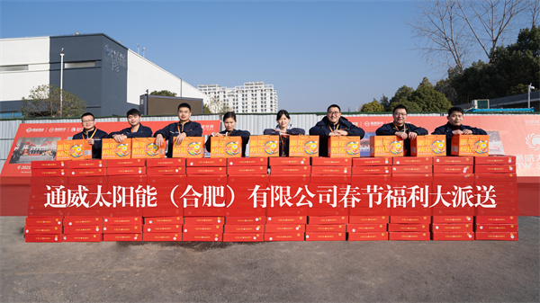 歡聲笑語辭舊歲,暖意融融迎新春。值此兔年新春佳節來臨之際,為感謝全體員工一年來的辛勤付出,表達對廣大員工的濃濃關愛和新春祝福,1月11日,在通威太陽能(合肥)有限公司工會的統一安排部署下,為全體員工發放了暖心的春節福利。