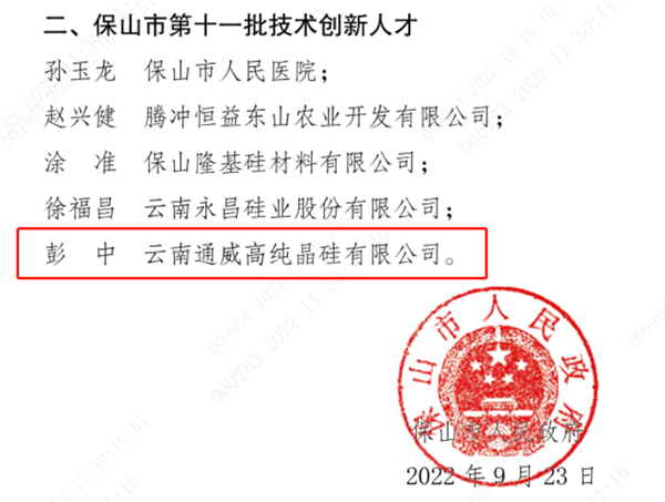 近日,保山市人民政府正式公布了第十三批“企業技術創新中心”及第十一批“技術創新人才”評定結果。云南通威榮獲“保山市企業技術創新中心”稱號,副總工程師彭中獲評“保山市技術創新人才”。