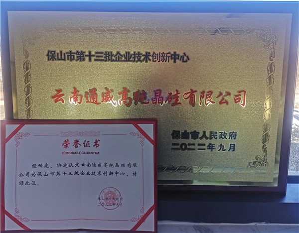 熱烈祝賀云南通威榮獲“保山市企業技術創新中心”稱號
