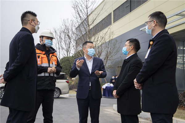 在三期項目施工現場,周華總首先對工程進度進行詳細詢問,同時深入三期車間現場對8.5GW智能高效N型車間運行情況進行檢查,并詳細了解了疫情反復期間各部門工作任務進展、疫情防控開展等相關工作情況。