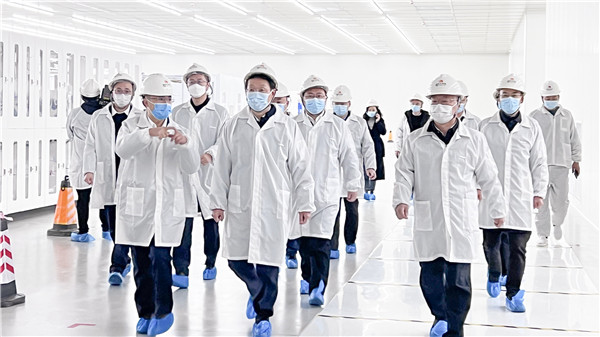 眉山市委副書記、市長黃河一行參觀通威太陽能眉山基地S3車間