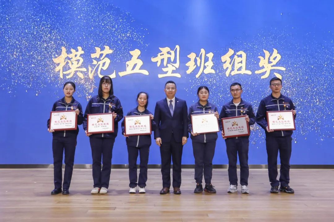 大會現場特別表彰了模范五型班組及忠誠員工,以樹標桿、揚標桿,傳遞榜樣力量。蕭總、周總分別為“2022年度通威集團忠誠員工獎”“模范五型班組獎”頒獎,并結合在太陽能的所得所感進行分享,鼓勵大家繼續以高標準、嚴要求的通威精神對待工作,腳踏實地,高效執行,充分發揮先進典范的引領作用,助力公司高質量發展。