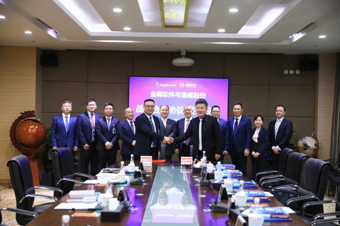 座談會上,雙方共同了解金蝶集團管理軟件與云服務等產品及業務發展情況,分享金蝶在大型集團解決方案上的成功案例,并在協同推動通威數字化轉型方面達成共識。徐少春主席表示,金蝶致力于讓每一家企業都擁有EBC的可組裝能力,目前已為全球上百萬家企業、政府等提供數字化管理方案。新能源是全球最具爆發力的行業之一,通威緊抓歷史發展趨勢,在能源革命時代構筑了完整的光伏產業鏈,為匹配通威近年快速發展需要,希望繼續為通威提供數字化服務,構建一流數字化平臺,助力通威更大規模、更高質量的發展,在數字化時代實現共創、共生、共贏。 劉漢元主席回顧了雙方合作歷程,并表示,軟件行業不可避免正在發生國產化替代的大趨勢,大型集團企業對基礎平臺軟件的需求日益增多,金蝶與通威合作多年,期待雙方在互信基礎上進一步加強合作,針對管理需求開發針對性應用,完善數據庫和信息支持系統,共同探討適應行業發展和先進企業管理的成功模式。 隨后,通威股份信息總監周勇、金蝶中國總裁章勇代表雙方簽署戰略合作協議。雙方均表示,將在企業信息化建設、企業數字化轉型方面展開廣泛合作,共同打造信息化領域最佳實踐,服務雙方長期發展戰略。