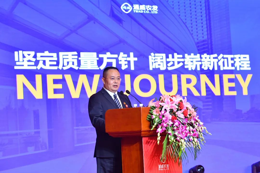 通威股份農(nóng)牧總裁兼通威農(nóng)發(fā)總經(jīng)理郭異忠在主題報告中回顧農(nóng)牧板塊五年規(guī)劃及取得的成績,同時再次強調(diào)質(zhì)量方針,并對質(zhì)量方針下的營銷轉(zhuǎn)型工作提出具體要求。郭總表示,越來越多的成功經(jīng)驗已經(jīng)持續(xù)驗證,質(zhì)量方針指引下的營銷轉(zhuǎn)型方法能帶來可持續(xù)的高質(zhì)量發(fā)展。水產(chǎn)行業(yè)的競爭早就進入存量博弈的時代,水產(chǎn)養(yǎng)殖資源在快速集中,通威持續(xù)以用戶為中心、用“質(zhì)量”定位搶占用戶心智的道路正確且必要。如今,我們的營銷轉(zhuǎn)型工作已經(jīng)取得階段性成效,面對新形勢、新機遇,立足新起點、新征程,更要堅持質(zhì)量方針,做到綜合成本最低、養(yǎng)殖效益最優(yōu)、綜合競爭力行業(yè)絕對第一,實現(xiàn)滿產(chǎn)滿銷。未來,我們也要緊抓標準化與滿產(chǎn)滿銷兩大核心競爭力,并將二者有機結(jié)合,真正實現(xiàn)持久的高速增長。