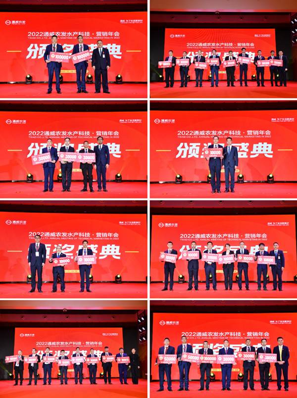 在劉漢元主席的戰(zhàn)略指引和正確領(lǐng)導(dǎo)下,2022年分子公司全員深入學(xué)習(xí)和落實質(zhì)量方針精神,全面推進標準化建設(shè)工作,以用戶養(yǎng)殖效益最大化為核心,全員落實營銷轉(zhuǎn)型,以對質(zhì)量底線的堅守,獲得了市場的認可。為更好激勵片區(qū)及團隊員工充分發(fā)揮主觀能動性,激發(fā)市場一線的技術(shù)自信和營銷自信,本次會議特別表彰營銷轉(zhuǎn)型過程中優(yōu)秀團體、個人及專項,現(xiàn)場嘉獎堅持營銷轉(zhuǎn)型、業(yè)績突出的優(yōu)秀片區(qū)、公司、推高推優(yōu)優(yōu)秀公司、優(yōu)秀市場經(jīng)理、優(yōu)秀服務(wù)工程師、優(yōu)秀營養(yǎng)師、優(yōu)秀教練及支撐協(xié)同人員,鼓勵大家在激烈競爭中持續(xù)突圍。