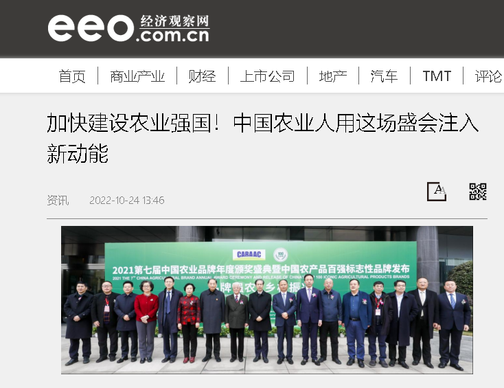 中新網聚焦2022第八屆中國農業品牌年度頒獎盛典