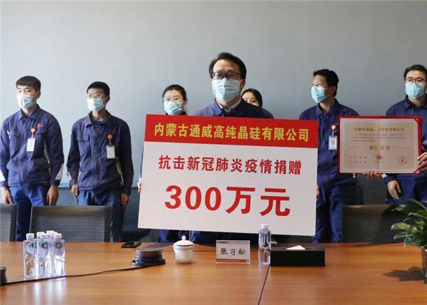 疫情襲來(lái),內(nèi)蒙古通威第一時(shí)間部署疫情防控工作,一手抓疫情防控,一手抓生產(chǎn)經(jīng)營(yíng),捐贈(zèng)300萬(wàn)抗“疫”資金,助力包頭抗擊疫情,與包頭市同舟共濟(jì),共克時(shí)艱。10月23日,捐贈(zèng)儀式在線(xiàn)上舉行,包頭市黨組成員王秀蓮,昆都侖區(qū)委副書(shū)記、政府區(qū)長(zhǎng)田洪成,內(nèi)蒙古通威常務(wù)副總經(jīng)理張習(xí)松出席“線(xiàn)上”捐贈(zèng)儀式。