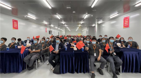 10月4日,姚總攜中干團(tuán)隊(duì)現(xiàn)場慰問在崗員工,并發(fā)放2600余斤愛媛果凍橙,讓員工心里倍感溫暖。當(dāng)晚,工會(huì)組織開展紅色觀影活動(dòng),活動(dòng)現(xiàn)場,大家齊聲高唱《我和我的祖國》,用嘹亮的歌聲表達(dá)對祖國的祝福,同時(shí)互相鼓舞,堅(jiān)定戰(zhàn)勝疫情的決心和信心。