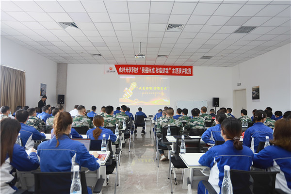 9月22日,永祥光伏科技“標(biāo)準(zhǔn)是我、我是標(biāo)準(zhǔn)”主題演講比賽圓滿(mǎn)落幕,永祥光伏科技副總經(jīng)理張軍、副總工程師馬自成、總經(jīng)理助理高俊偉、各部門(mén)負(fù)責(zé)人及部分干部員工參加。