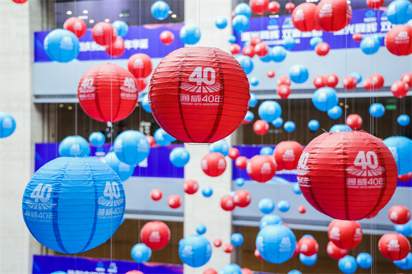 通威國(guó)際中心布置一新,營(yíng)造熱烈的氣氛喜迎通威40年