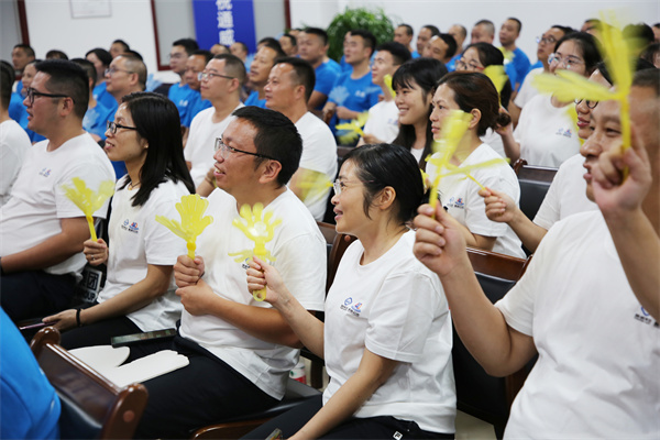 劉漢元主席向大會(huì)分會(huì)場(chǎng)員工揮手致意