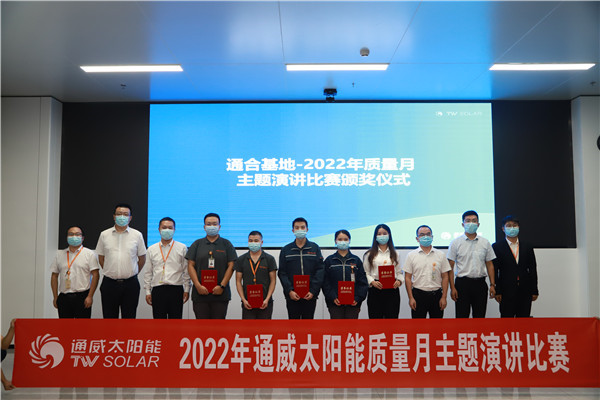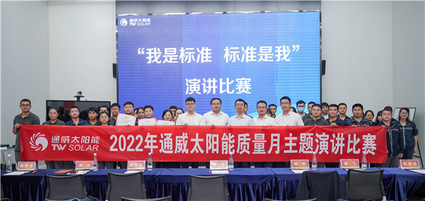 為深入學(xué)習(xí)習(xí)近平總書記關(guān)于標(biāo)準(zhǔn)化工作的重要論述,貫徹落實(shí)《國家標(biāo)準(zhǔn)化發(fā)展綱要》,推動(dòng)企業(yè)標(biāo)準(zhǔn)化建設(shè),提高企業(yè)管理水平及產(chǎn)品質(zhì)量水平,9月15至21日,通威太陽能在質(zhì)量月舉行了“我是標(biāo)準(zhǔn),標(biāo)準(zhǔn)是我”主題演講比賽,通威太陽能雙流基地總經(jīng)理助理蔣衛(wèi)朋、合肥基地總經(jīng)理助理顧峰、眉山基地總經(jīng)理助理姚騫及各基地中干代表出席活動(dòng)并擔(dān)任評委。