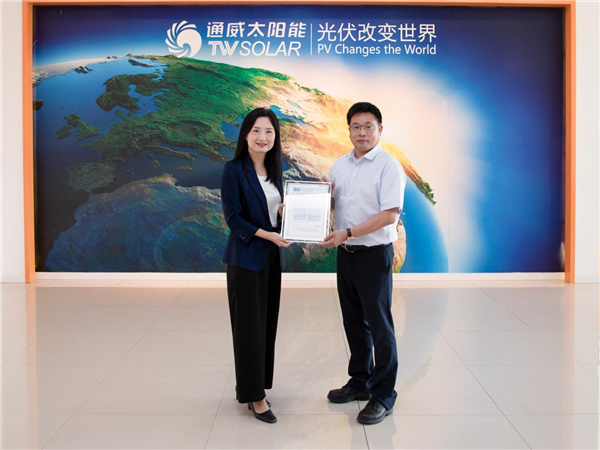 9月7日,TüV北德可再生能源高級副總裁、全球光伏運營中心總裁兼大中華區(qū)副總裁須婷婷一行蒞臨通威太陽能(合肥)有限公司,并向通威太陽能頒發(fā)資質證書,通威股份總裁助理、通威太陽能(合肥)有限公司總經(jīng)理蕭圣義出席授牌活動。隨后雙方領導就相關合作事宜進行了座談交流。