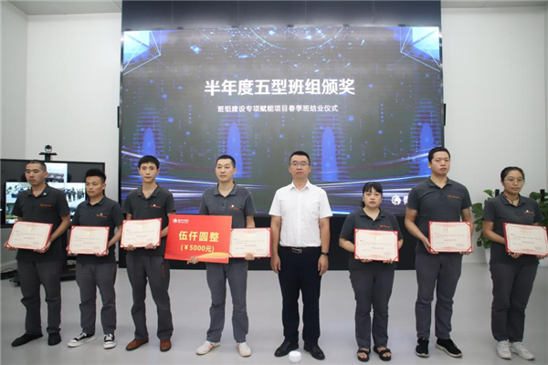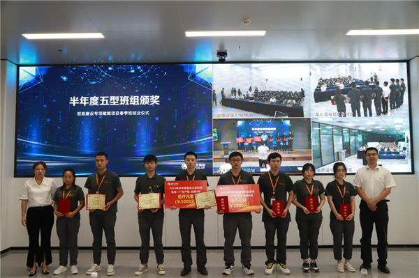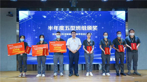 隨后合肥、雙流、眉山、金堂基地及通合項目的班組學員代表依次對半年來班組建設成果進行匯報展示,春季班的全體成員及導師現場聆聽學習各基地班組建設優秀經驗,對標審視各自班組的不足,并為未來建設優秀班組打開新思路。在春季班項目實施過程中,涌現了許多學習成果突出、班組建設成果明顯的學員和團隊,活動現場對表現優異的團隊及個人進行頒獎,現場掌聲雷動。