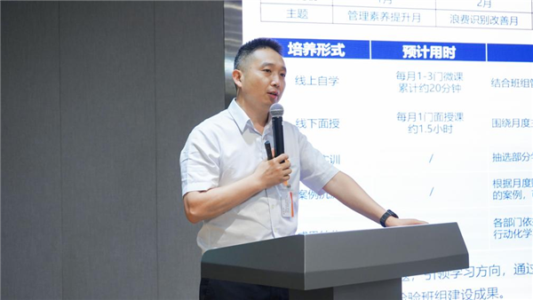 活動尹始,通威太陽能總經理助理陳君對項目實施成果進行回顧總結,半年來光伏學習中心圍繞五型班組打造建立了完善的評優表彰機制,采用線上自學、線下探討、現場項目實踐、案例分析沉淀及展示匯報等多種方式賦能提升一線管理者綜合能力,助力一線班組管理者及高潛儲備人才學習班組建設技能,厘清班組管理思路。陳總表示,上半年圍繞五型班組建設,各基地、各部門都營造了良好的班組PK氛圍,班組建設成果突出,未來希望通過持續的明方向、作比較、提技能催生更多優秀團隊。
