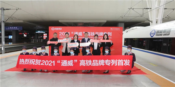 ▲2021年10月18日,通威集團高鐵冠名列車首發儀式在上海虹橋高鐵站成功舉行